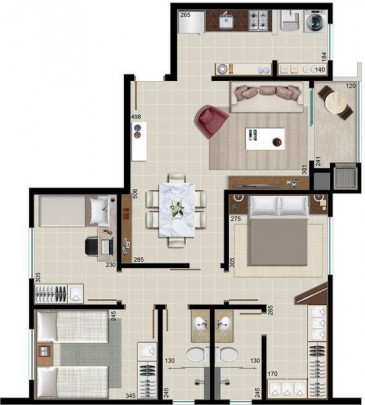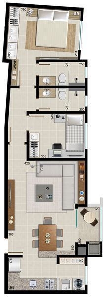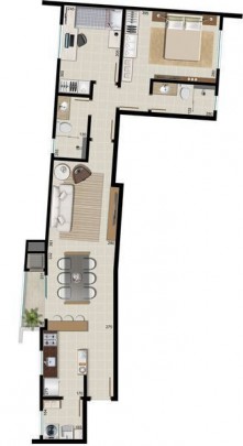 Apartamentos com 2 dormitórios + 1 suíte com closet ou 1 dormitório + 1 suíte.